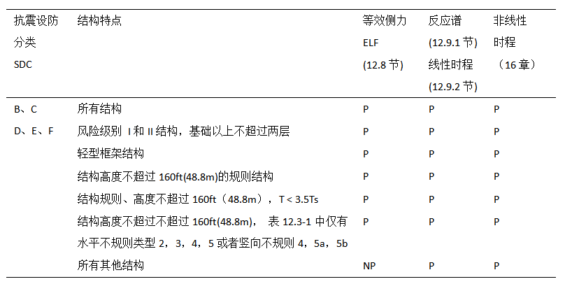 ASCE 7 表 12.6-1 允許的分析方法